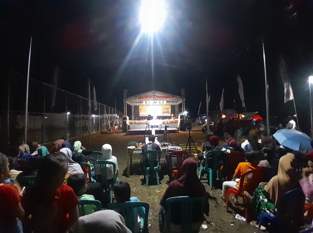 Antusiasme penonton tampak terlihat dengan banyaknya kalangan masyarakat yang tumpah ruah ke lokasi tempat digelarnya acara pagelaran wayang golek dengan menghadirkan Ki Dalang Ading Bontot, duet Dalang Jahran – Abi diiringi gamelan Nayaga Ngora serta Badega Garuda Sakti.