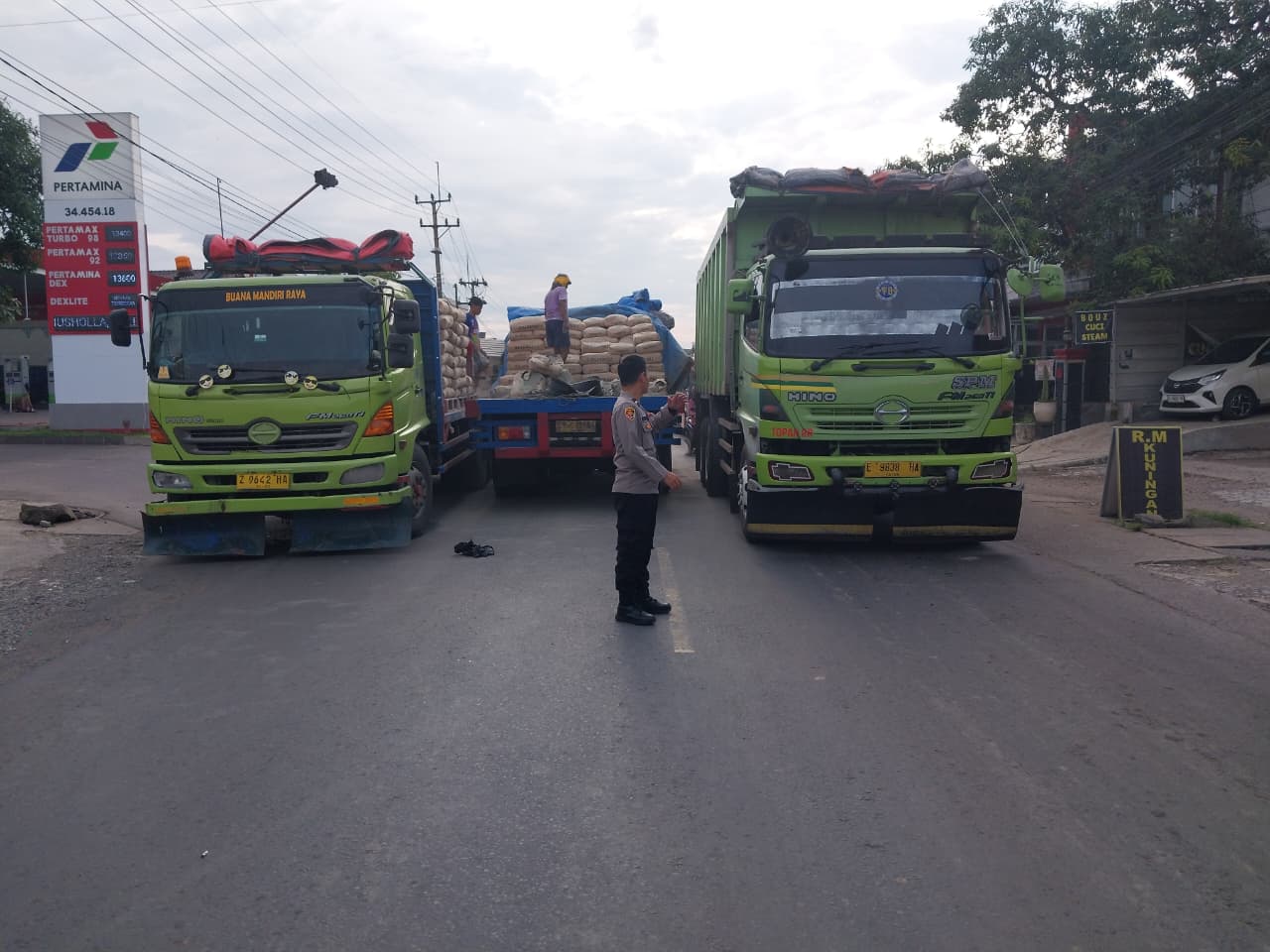 Majalengka // Zonakabar.com – Anggota piket Polsek Jatiwangi, Polres Majalengka, melakukan penguraian kemacetan akibat kecelakaan lalu lintas berupa tabrakan beruntun yang melibatkan dua truk pengangkut semen di Jalan Raya Bandung–Cirebon, tepatnya di depan SPBU Ciborelang, Kamis (15/01/2026).