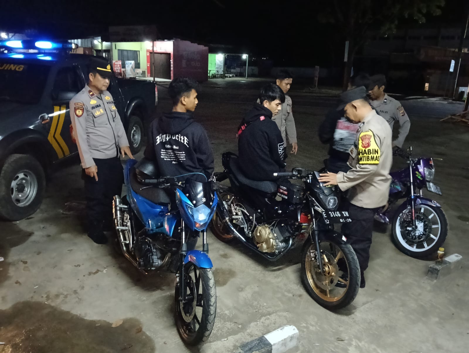 Patroli dilakukan secara mobiling dan dialogis menyasar titik-titik rawan, seperti pemukiman penduduk, perkantoran, jalan-jalan sepi, serta tempat-tempat yang kerap dijadikan ajang kumpul remaja atau balap liar. Dalam kegiatan tersebut, petugas juga menyampaikan imbauan kamtibmas kepada masyarakat agar turut serta menjaga keamanan lingkungan dan tidak melakukan pelanggaran hukum, khususnya penggunaan knalpot tidak sesuai spesifikasi teknis (brong).