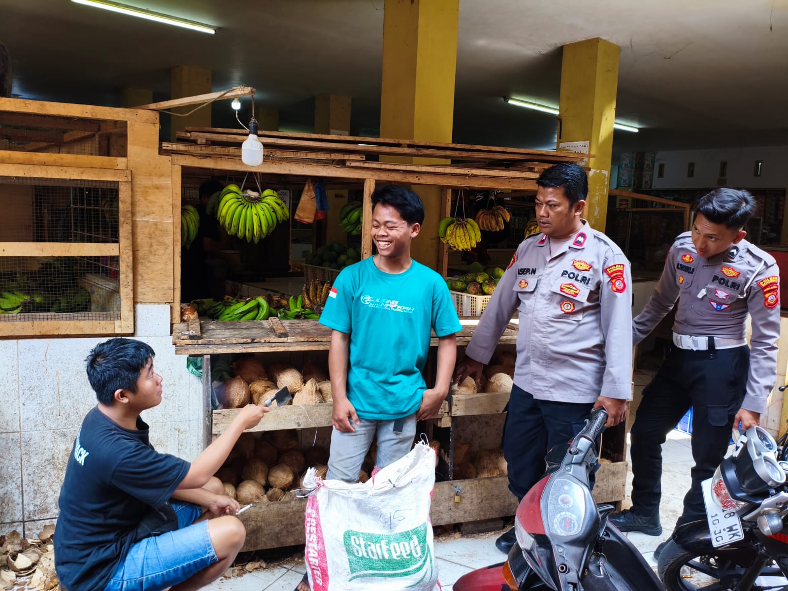 Pada kesempatan tersebut, Aipda Asep Nugroho memberikan pesan-pesan Kamtibmas dan juga menyambangi sejumlah warga yang sedang beraktifitas dan menyempatkan untuk berdialog sejenak sembari memberikan pesan-pesan Kamtibmas.