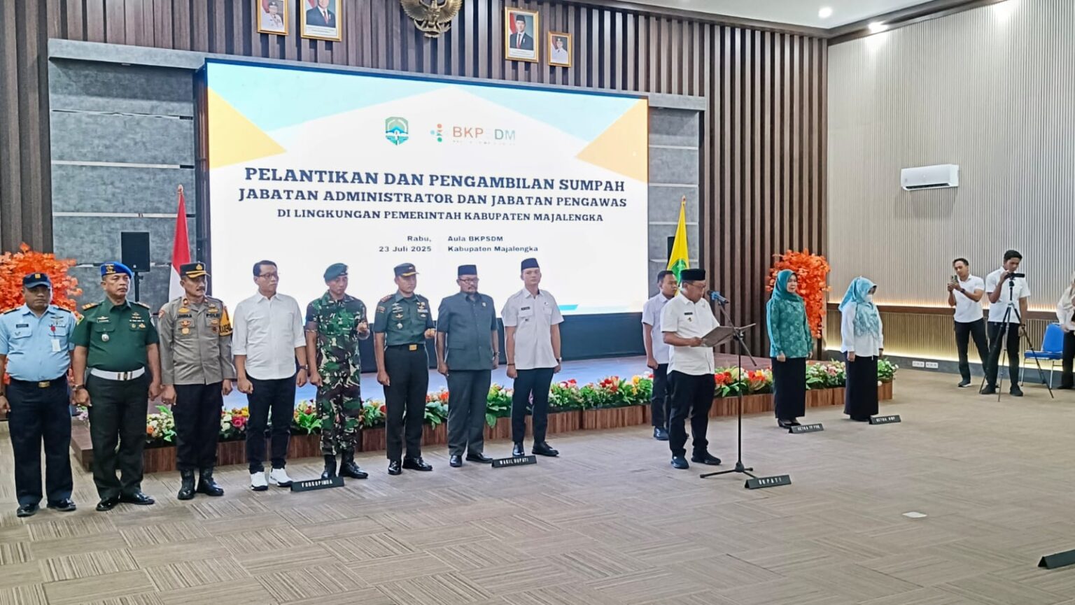 Majalengka // zonakabar.com – Sebanyak 187 pejabat eselon III dan IV di lingkungan Pemkab Majalengka resmi di lantik dan diambil sumpah jabatannya oleh Bupati Majalengka, Eman Suherman. yang berlangsung rabu (23/7/2025) di Aula Badan Kepegawaian dan Pengembangan Sumber Daya Manusia (BKPSDM).