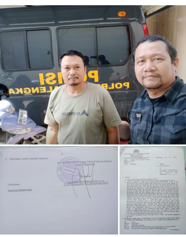 Lalu kemudian pada 11 April 2023 perkaranya sudah dilimpahkan ke Polres Majalengka. - Hingga akhirnya tepat hari Sabtu 15 februari 2025, saya menerima “Surat Pemberitahuan Perkembangan Hasil Penelitian Laporan”. Nomor: B/46/ll/RES.1.24/2025/Sat Reskrim, dari polres Majalengka.