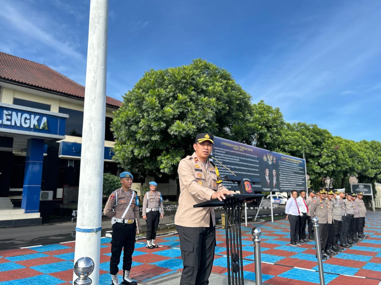 Jam pimpinan kali ini, Wakapolres Majalengka KOMPOL Asep Agustoni menyampaikan arahan Pimpinan Kapolres Majalengka AKBP Indra Novianto memberikan beberapa penekanan kepada personel saat pelaksanaan apel pagi di lapangan apel Polres Majalengka, Senin (24/2/2025).