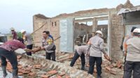 Anggota Sat Brimob Polda Jabar Laksanakan Giat SAR Pembersihan Puing Pasca Puting Beliung di Desa Slangit