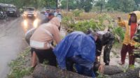 Polsek Sumberjaya Sigap Evakuasi Pohon Tumbang di Jalur Desa Lojikobong