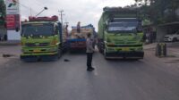 Anggota Polsek Jatiwangi Urai Kemacetan Akibat Tabrakan Beruntun Truk Pengangkut Semen di Jalan Raya Bandung–Cirebon