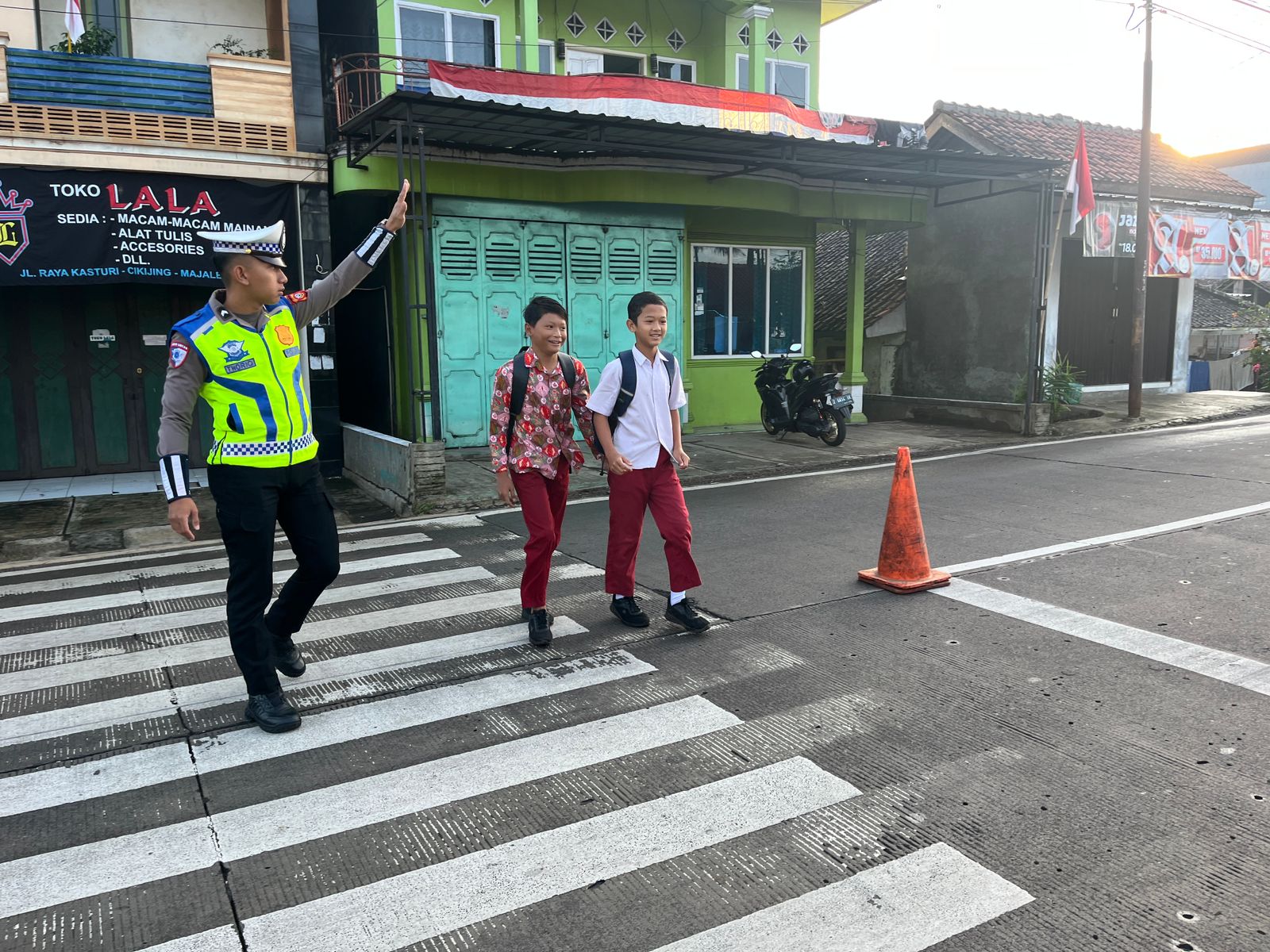 Majalengka // Zonakabar.com – Polsek Cikijing Polres Majalengka Polda Jabar terus berupaya memastikan kelancaran arus lalu lintas serta meningkatkan keamanan dan keselamatan pengguna jalan. Anggota Satlantas Bripda Muhammad Thoriq R. melaksanakan Protap Pelayanan Gatur Lalin di Jl. Raya Cikijing-Talaga tepatnya di SDN 1 Kasturi, Kecamatan Cikijing, Jum’at (22/08/2025).