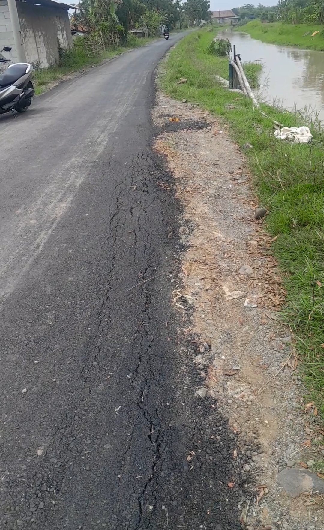 Seperti yang terpantau zonakabar.com di lokasi pada selasa (24/3/2026), tampak kondisi aspal jalan tersebut mengalami kerusakan yang cukup parah.