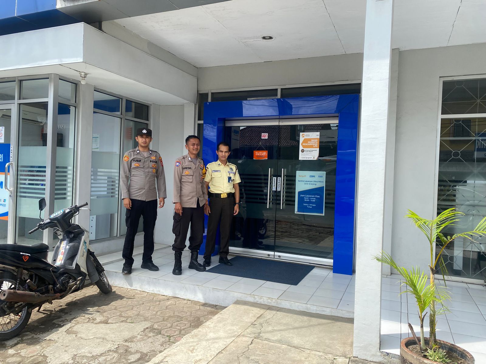 Meskipun di hari libur, Personil Polsek Cikijing tetap melakukan pemantauan untuk memberikan perlindungan serta rasa aman kepada masyarakat yang sedang bertransaksi di gerai ATM yang terdapat di Bank tersebut.