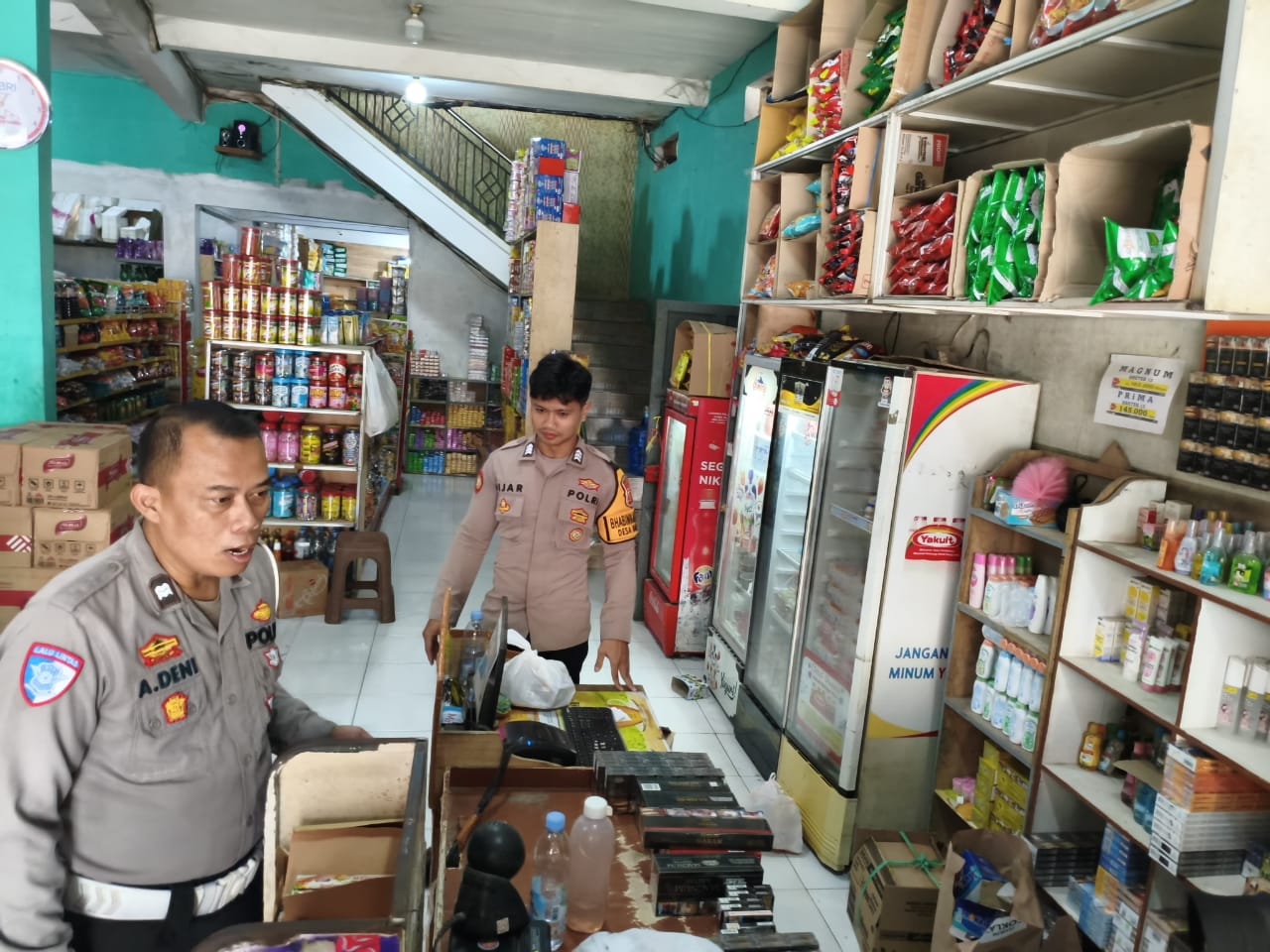 Majalengka, Zonakabar.com – Ps. Panit Lantas Polsek Cikijing Polres Majalengka Polda Jabar, Aiptu Ade Deni H. bersama Bhabinkamtibmas Brigadir Pijar menyambangi salah satu toko kelontong di Desa Cidulang, Kecamatan Cikijing, Kabupaten Majalengka, pada Rabu (23/04/2025).