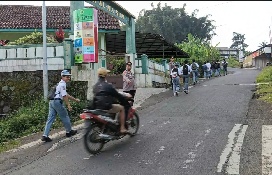 Majalengka, // Zonakabar.com Pelayanan Gatur Lalu Lintas pagi, Pasca masuk Anak Sekolah di Wilayah Hukum Polsek Malausma Polres Majalengka Yang akan Melaksanakan Belajar mengajar guna Memberikan Kelancaran Bagi Pengguna Jalan, Senin (27/4/2026).