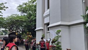 Lanjutnya, para personil juga melaksanakan pengecekan di seputaran gereja guna memastikan hal-hal yang tidak diinginkan dan menjamin situasi tetap aman dan kondusif.