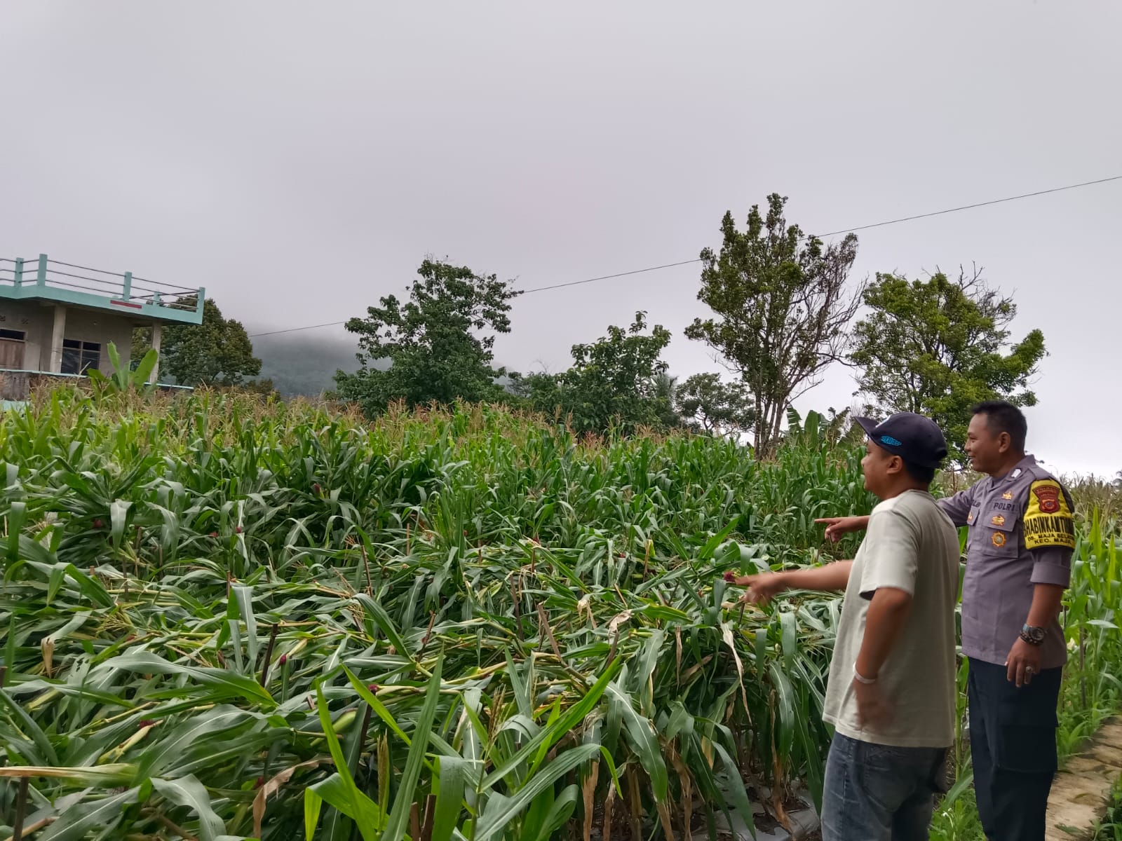 Bripka Soleh bersama dengan masyarakat setempat melakukan pengecekan tanaman jagung yang ditanam di lahan pertanian milik warga. Selain memastikan pertumbuhan tanaman jagung yang sehat, Bripka Soleh juga memberikan edukasi kepada petani tentang cara merawat tanaman agar hasil yang diperoleh optimal. Kegiatan ini diharapkan dapat membantu para petani untuk meningkatkan hasil pertanian dan pada akhirnya berkontribusi dalam menciptakan ketahanan pangan yang lebih baik di desa.