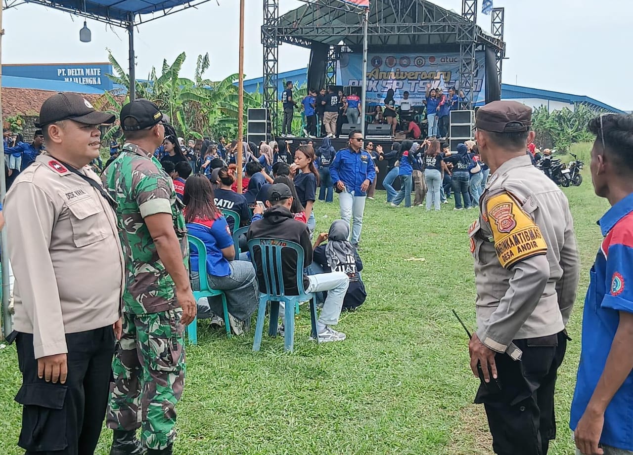 Majalengka // Zonakabar.com – Dalam rangka menciptakan situasi kamtibmas yang aman dan kondusif, Bhabinkamtibmas Desa Jatisura Polsek Jatiwangi Polres Majalengka melaksanakan pelayanan pengamanan kegiatan Hari Ulang Tahun (HUT) Serikat Atuc PT Delta yang ke-2.