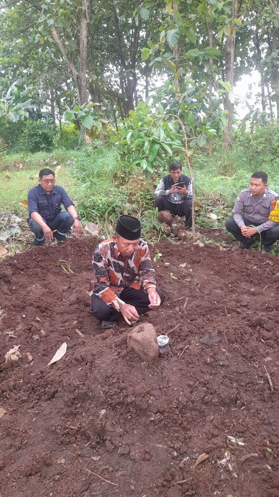 Dalam suasana haru, keluarga korban memanjatkan doa di pusara almarhumah. Kehadiran Bhabinkamtibmas, Babinsa, dan Kepala Kelurahan tidak hanya memberikan rasa aman, tetapi juga menjadi penguat batin bagi keluarga agar tetap tabah menghadapi musibah ini.