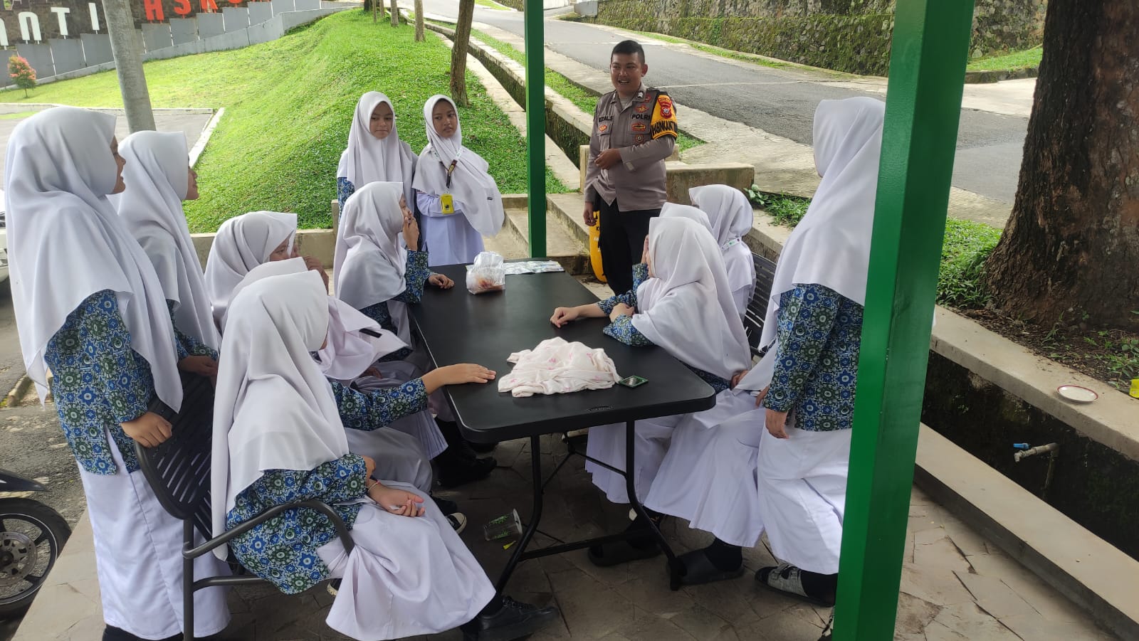 Dalam kunjungan tersebut, Bhabinkamtibmas menyempatkan diri untuk berdialog langsung dengan para pelajar di lingkungan desa. Suasana santai namun penuh makna terjalin saat petugas memberikan pesan-pesan kamtibmas kepada para siswa.