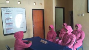Suasana kegiatan berlangsung penuh kehangatan dan kekeluargaan, mencerminkan semangat Bhayangkari yang senantiasa mendukung tugas-tugas Kepolisian dalam menjaga keamanan dan ketertiban masyarakat.