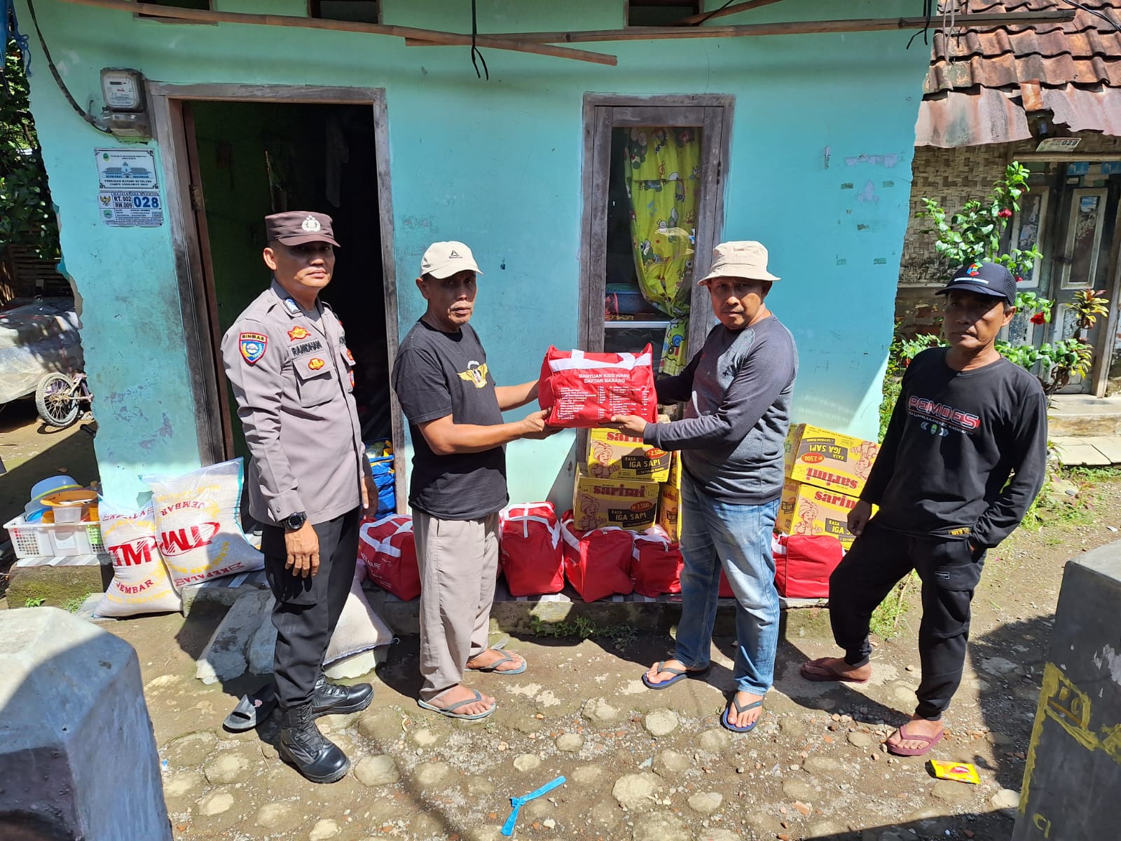Majalengka, Zonakabar.com – Bhabinkamtibmas Desa Liangjulang, Bripka Mochamad Atin Ramdhan, S.H., dari Polsek Kadipaten Polres Majalengka Polda Jabar, melaksanakan kegiatan monitoring sekaligus pengamanan dalam penyaluran bantuan sosial kepada warga terdampak bencana banjir akibat meluapnya Sungai Cikasarung. Kegiatan ini dilaksanakan di Blok Dukuh Domba, Desa Liangjulang, Kecamatan Kadipaten, Kabupaten Majalengka. Minggu (18/5).