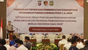 Palangka Raya, // Zonakabar.com Sebagai upaya memperkuat penegakan hukum yang berkeadilan, Polda Kalimantan Tengah (Kalteng) bersama Bareskrim Polri menggelar pembinaan teknis dan peningkatan kemampuan fungsi Korwas Penyidik Pegawai Negeri Sipil (PPNS), bertempat di Palace Ballroom Hotel Aquarius, Jl. Imam Bonjol, Kota Palangka Raya, Kamis (9/4/2026).