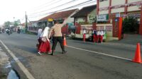 Gatur Pagi, Ps. Panit Lantas Polsek Cikijing Bantu Anak Sekolah menyeberang Jalan