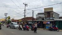 Ciptakan Kamseltibcar Lantas, Satlantas Polsek Cikijing Laksanakan Gatur di Simpang Tiga Cikijing