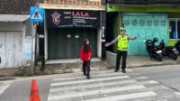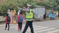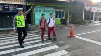 Ps. Panit Lantas Polsek Cikijing Laksanakan Gatur Pagi, Pastikan Keselamatan Anak Sekolah Saat Menyeberang Jalan