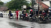 Walau Hujan Tak Surutkan Anggota Samapta Polres Majalengka Lakukan Gatur Lalin