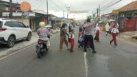 Gatur Pagi, Personil Polsek Cikijing Bantu Anak Sekolah Menyeberang Jalan
