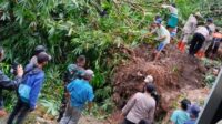 Polsek Leuwimunding Bersama Muspika dan Warga Bersihkan Timbunan Tanah Longsor di Desa Mindi