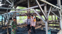 Bhabinkamtibmas Polsek Cikijing Cek Lokasi Pasca Terjadinya Kebakaran Kandang Ayam di Desa Bagjasari