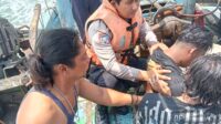 Detik-detik Polisi Evakuasi Kapal Terbalik di Perairan Wilayah Juntinyuat Indramayu