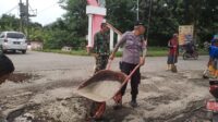 Sinergi TNI/Polri dan Warga Ligung Majalengka Tambal Jalan Berlubang