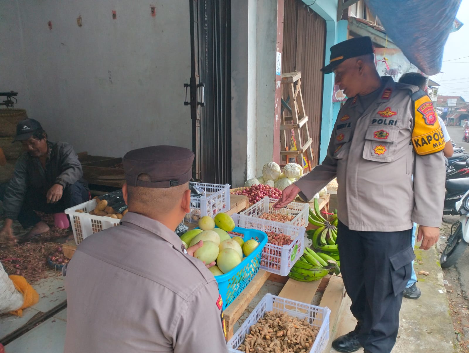 Majalengka, Zonakabar.com – Kapolsek Maja Polres Majalengka Polda Jabar Akp Kenedy Joko Lelono di dampingi Kanit Samapta polsek Maja Aipda Uruna, melaksanakan sambang dan dialogis dengan para pedagang di pasar tradisional Desa Maja Selatan, Kecamatan Maja, Kabupaten Majalengka.