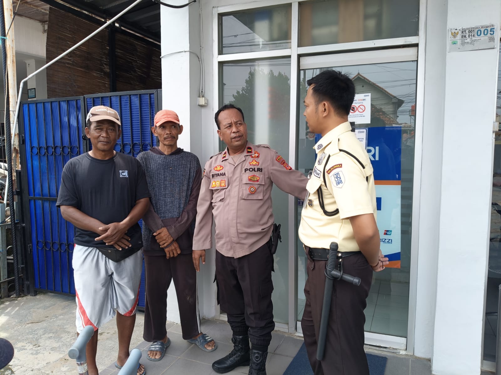 Petugas melakukan pengecekan kondisi sekitar area Bank BRI dan memastikan situasi tetap aman serta tidak ditemukan adanya aktivitas yang mencurigakan.