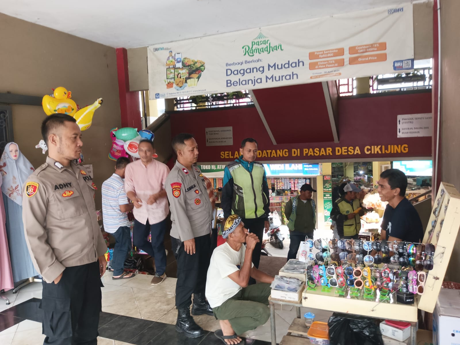 Majalengka, Zonakabar.com – Personil Polsek Cikijing, Polres Majalengka, Polda Jabar, terus berupaya menjaga kondusifitas wilayah dengan mendekatkan diri kepada masyarakat. Kali ini Ps. Panit Samapta l Aiptu Eman Subagja dan Ka SPKT lll Bripka Adi melaksanakan patroli dan menyambangi para pedagang di Pasar Cikijing, Kecamatan Cikijing, Kabupaten Majalengka, Kamis (24/04/2025).