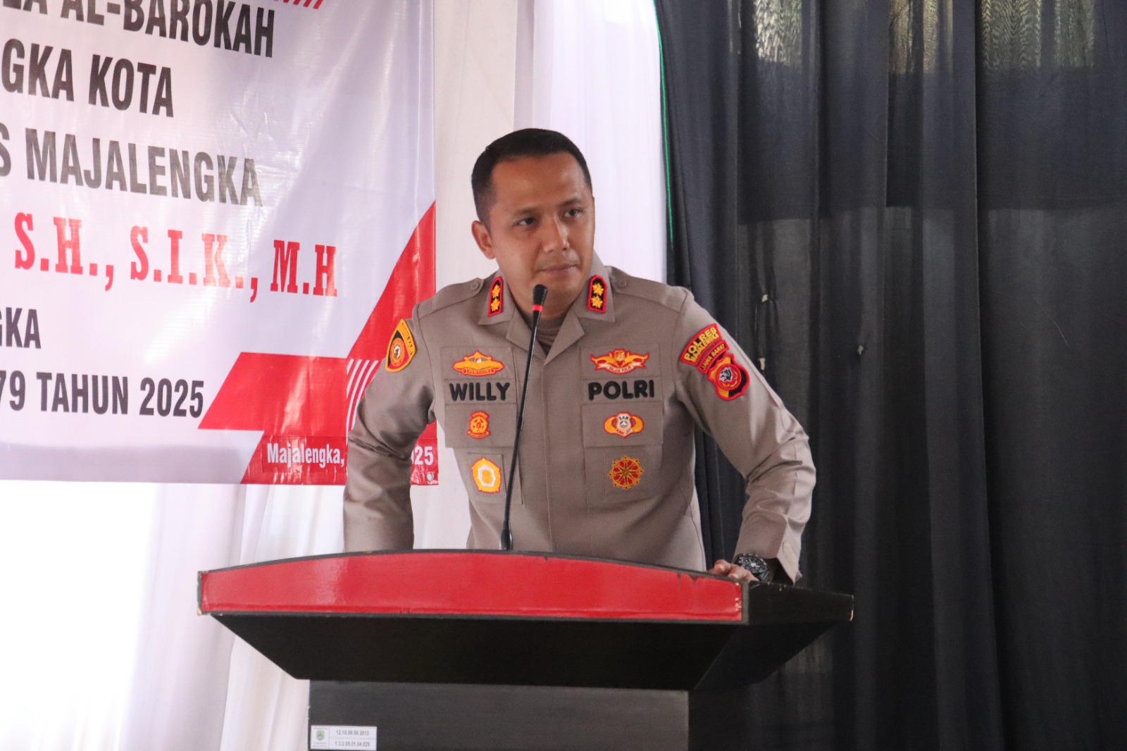 Dalam sambutannya, Kapolres Majalengka AKBP Willy Andrian menyampaikan rasa syukur dan apresiasi atas terwujudnya pembangunan Mushala Al-Barokah sebagai sarana ibadah dan pembinaan rohani bagi seluruh personel dan masyarakat sekitar.
