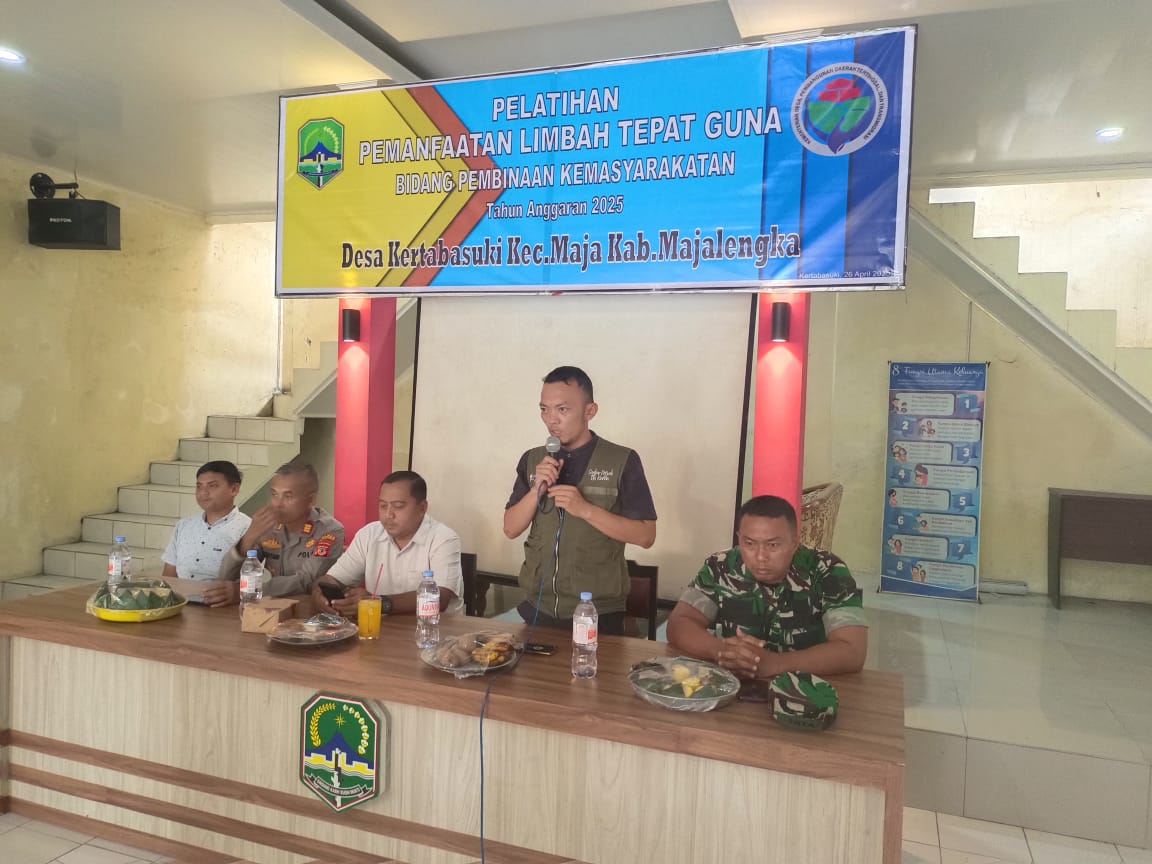 Majalengka, Zonakabar.com – Danramil 1702/Maja Kapten Arm Agus Rachman menghadiri kegiatan Pelatihan Pemanfaatan Limbah Tepat Guna di Balai Desa Kertabasuki, Kecamatan Maja, Kabupaten Majalengka, pada Sabtu (26/4/2025). Kegiatan ini merupakan bagian dari program bidang pembinaan kemasyarakatan Tahun Anggaran 2025.