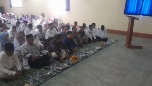 Acara ditutup dengan ramah tamah dan pembagian santunan kepada 50 anak yatim dari keluarga guru se-Kecamatan Panyingkiran, mencerminkan semangat berbagi di bulan Syawal. (Pendim_0617)