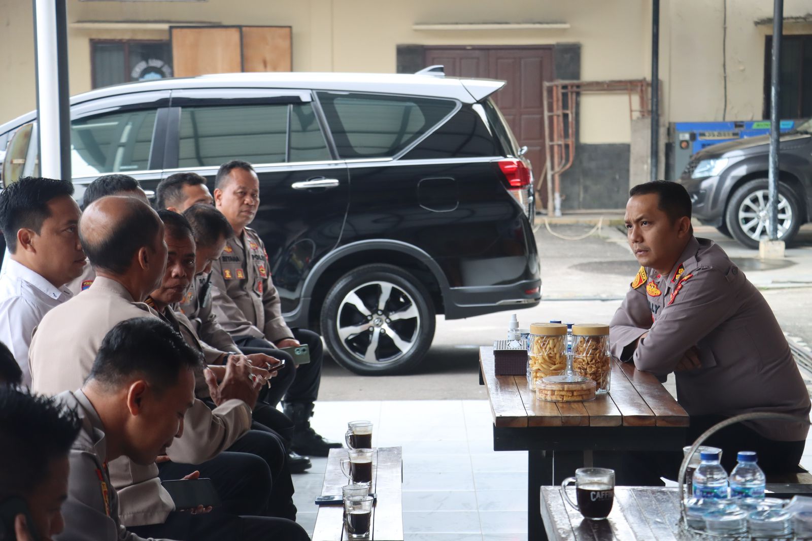 Usai Pelaksanaan Apel Pagi Kapolres Majalengka didampingi Waka Polres Majalengka menggelar acara Coffee Morning bersama seluruh pejabat utama Polres Majalengka yang terdiri dari para Kabag dan Kasat serta Perwira Staf Polres Majalengka di halaman Kantor Bag SDM Polres Majalengka.
