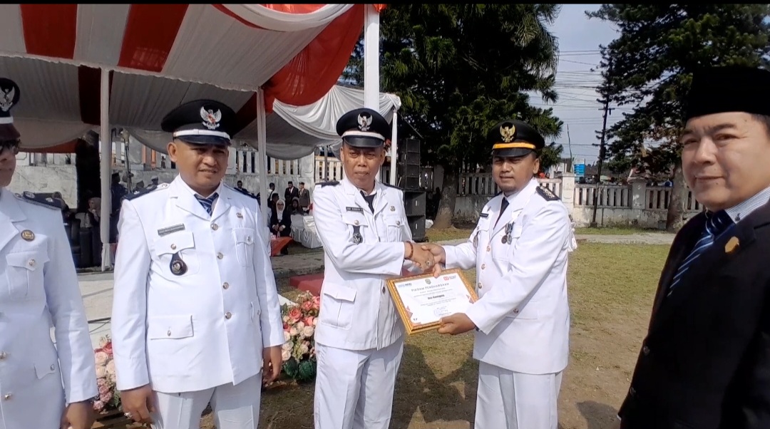 Penghargaan diberikan langsung Camat Maja Doni Fardiansyah, S.STP. kepada Kepala Desa Malompong Dede Hendratno Djuanda saat acara upacara HUT RI ke-80 tahun 2025 tingkat Kecamatan Maja yang digelar di lapangan alun – alun Maja, minggu (17/08/2025).
