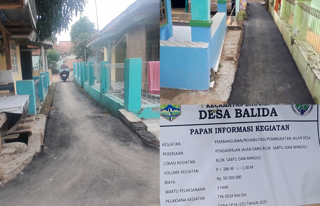 Diketahui, Pemdes Balida baru – baru ini telah melaksanakan program pengaspalan hotmix jalan lingkungan pemukiman di beberapa titik wilayah Blok. Anggarannya sendiri berdasarkan papan informasi kegiatan berasal dari Anggaran Dana Desa tahap 3 tahun 2025.