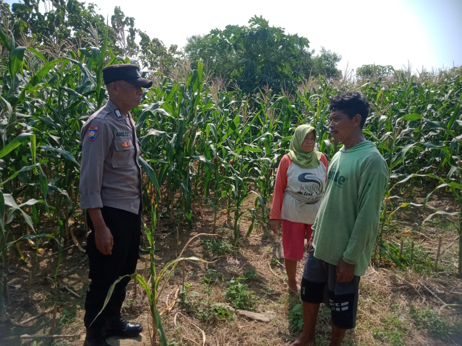 Kegiatan ini merupakan bagian dari dukungan Polri terhadap sektor pertanian, khususnya dalam menjaga ketahanan pangan di tingkat desa. Bripka Amus ZL turun langsung ke lahan pertanian milik warga untuk melihat secara langsung kondisi tanaman jagung sekaligus berdialog dengan para petani mengenai perkembangan pertanian di wilayah tersebut.