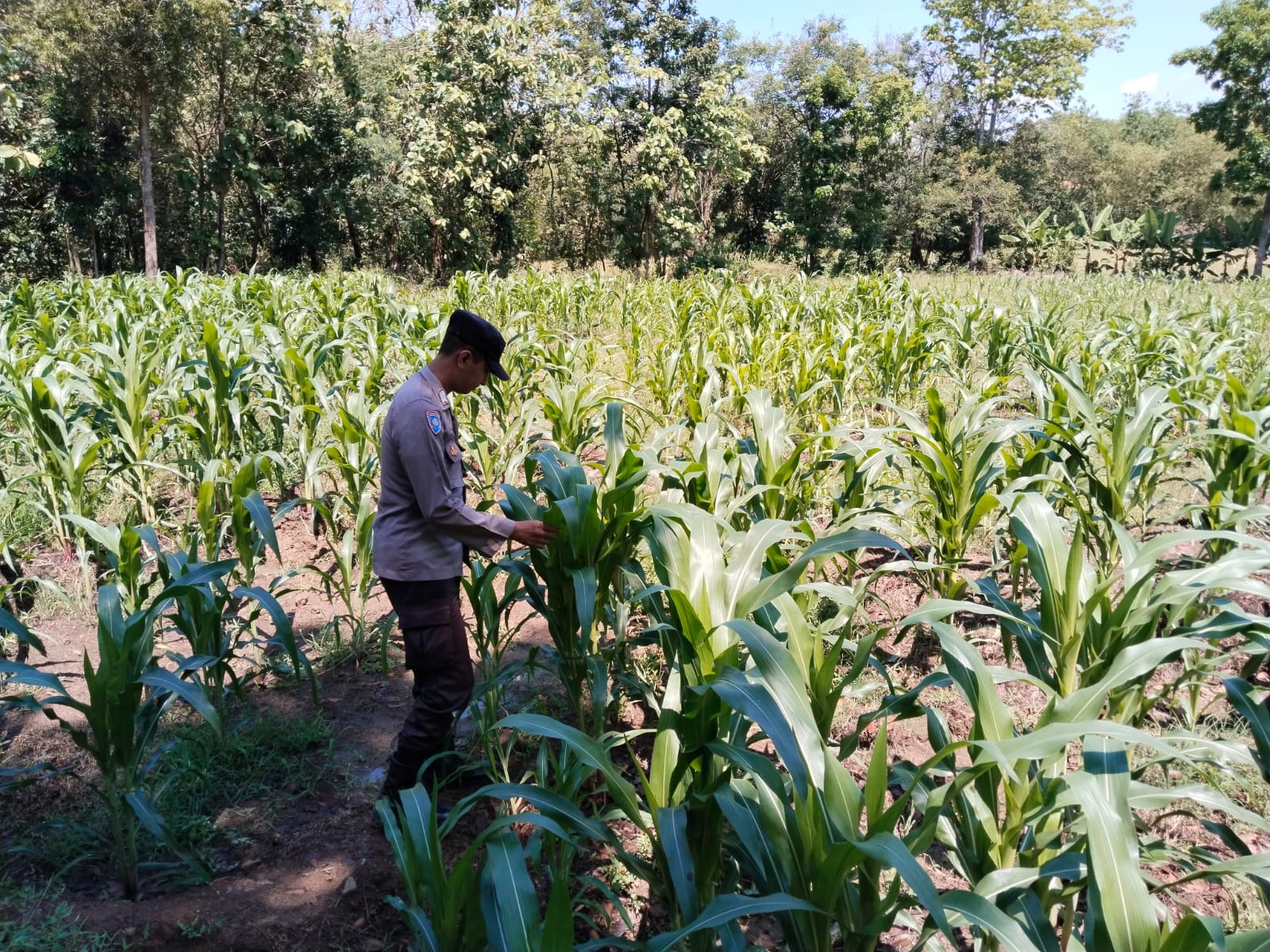 Bhabinkamtibmas turun langsung ke lahan pertanian untuk memantau perkembangan tanaman jagung milik warga. Selain itu, ia juga berdialog dengan para petani, memberikan semangat, serta menyampaikan pesan-pesan kamtibmas agar tetap menjaga keamanan dan ketertiban selama kegiatan pertanian berlangsung.