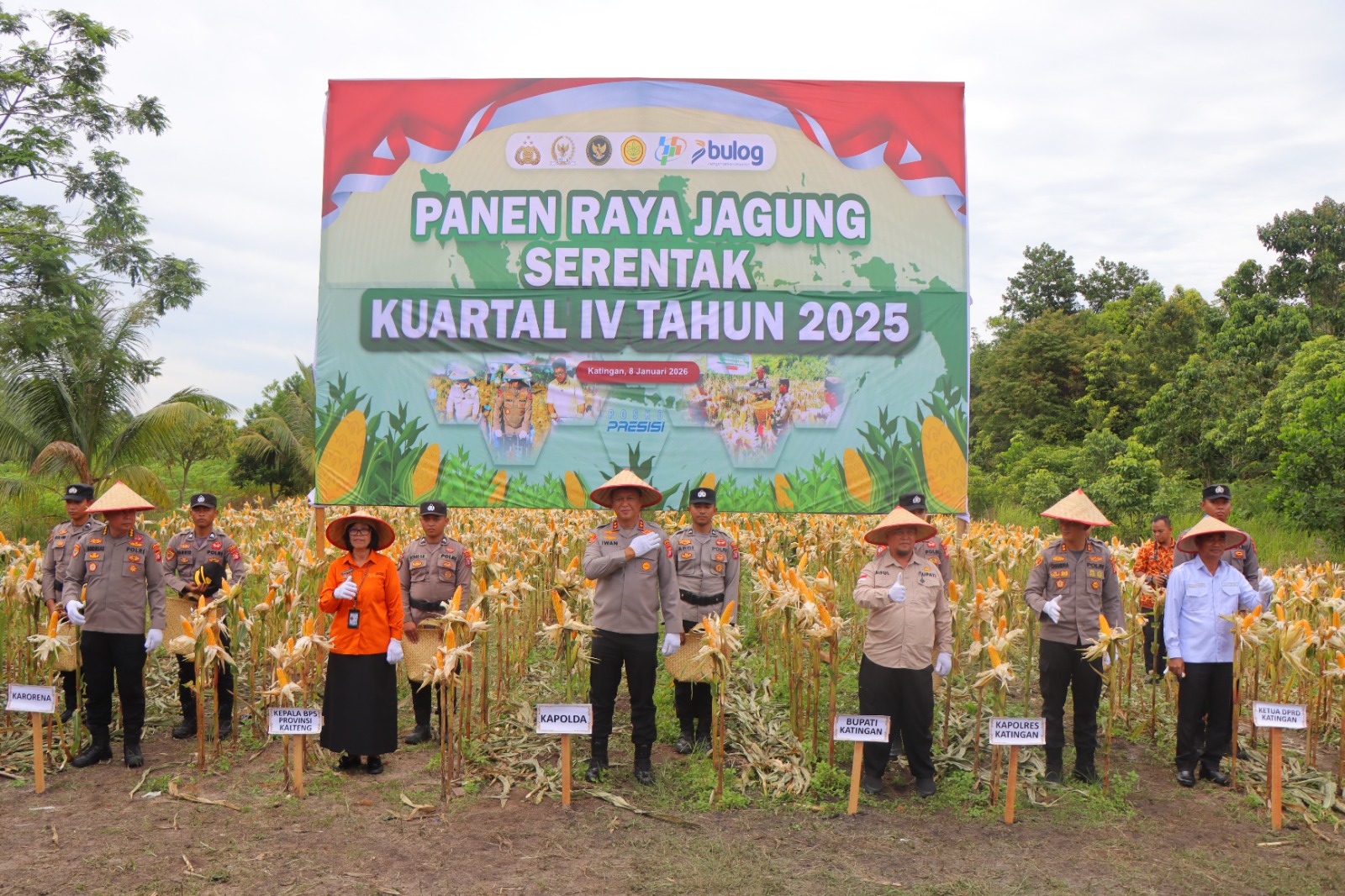 Katingan // Zonakabar.com Panen Raya Jagung Serentak Kuartal IV Tahun 2025 dilaksanakan di Desa Hampalam, Kecamatan Tewang Sanggalang Garing, Kabupaten Katingan, Provinsi Kalimantan Tengah, pada lahan seluas kurang lebih 0,6 hektare. Kegiatan ini merupakan bagian dari program nasional panen jagung serentak yang dipusatkan di Bekasi dan dipimpin langsung oleh Kapolri melalui Zoom Meeting. Kamis (08/01/2026)