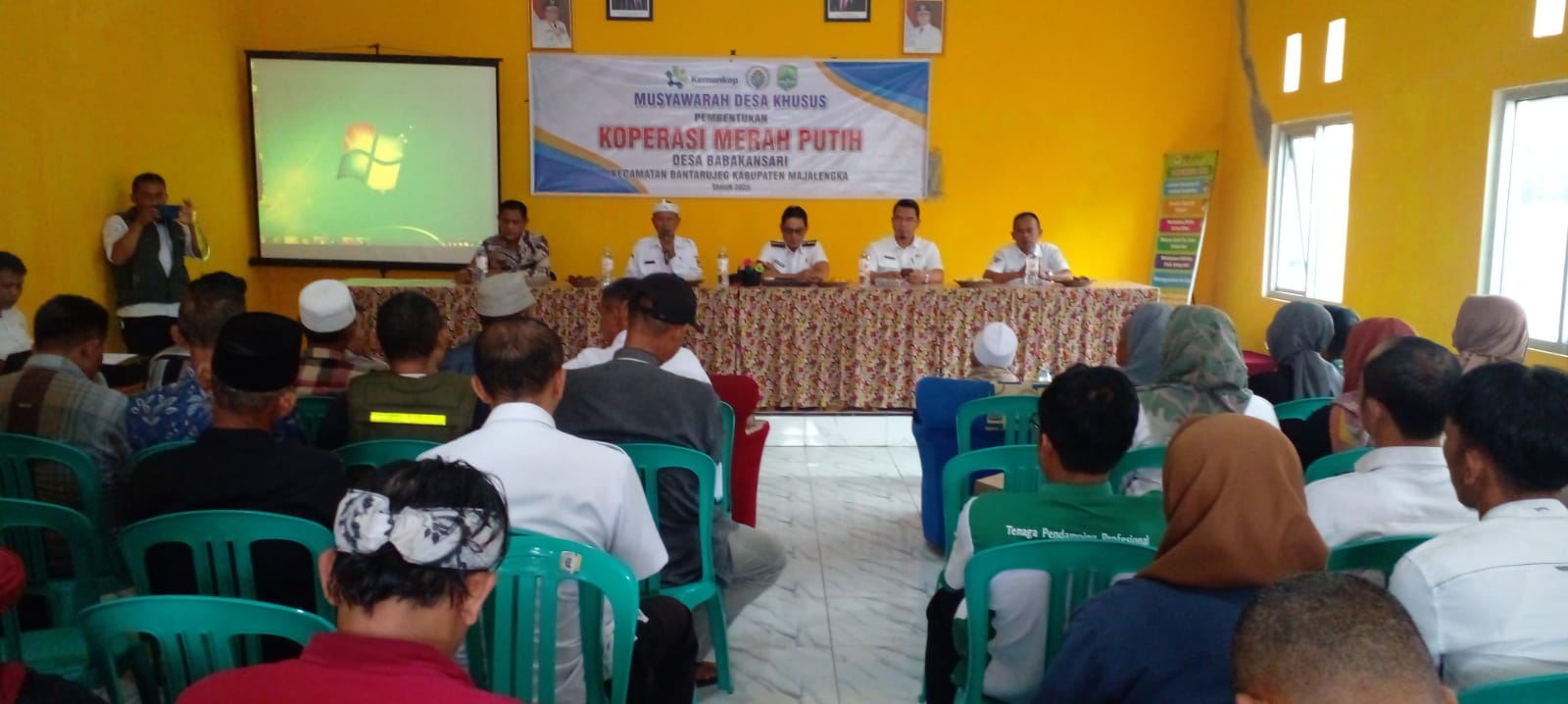 Majalengka, Zonakabar.com – Dalam rangka mendukung program penguatan ekonomi masyarakat di tingkat desa, Kapolsek Bantarujeg Polres Majalengka, AKP Baban Kusbandi, bersama Wakapolsek menghadiri kegiatan Musyawarah Desa Khusus (Musdesus) yang diselenggarakan di Kantor Desa Babakansari, Kecamatan Bantarujeg, Kabupaten Majalengka, Rabu (21/5/2025).