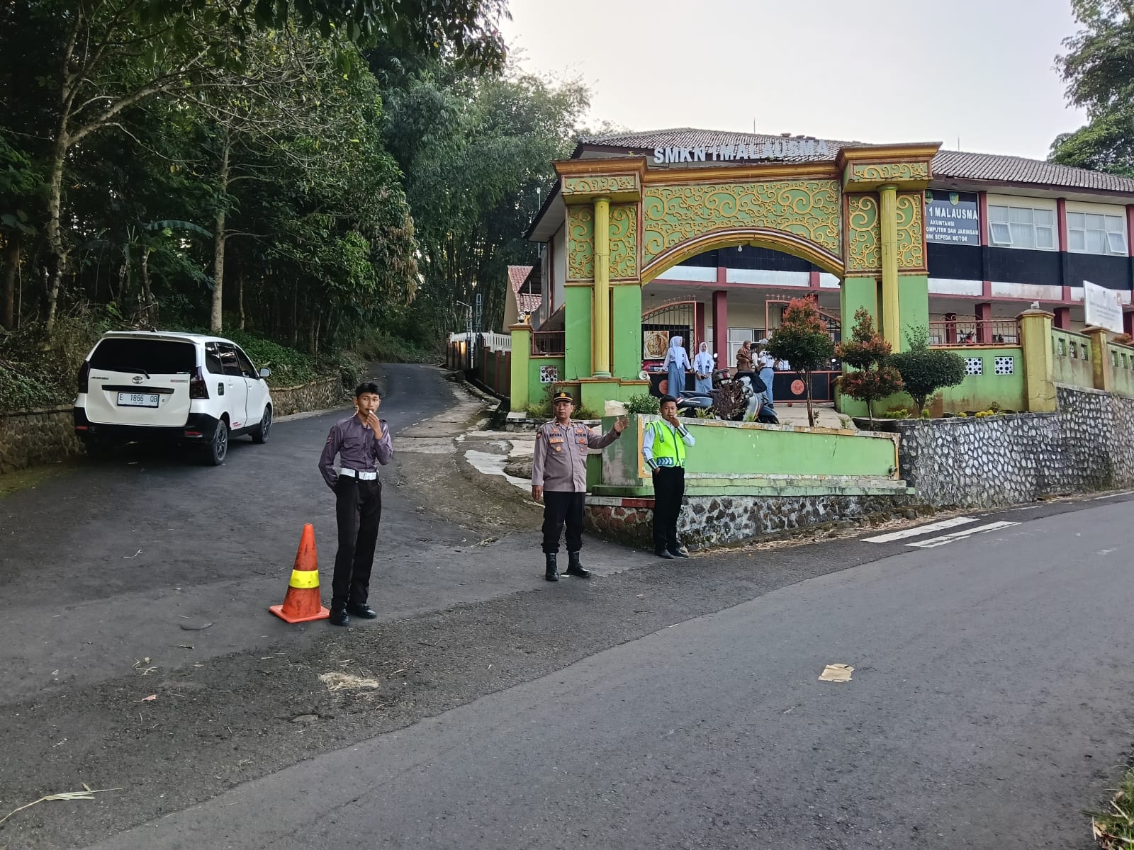 Mereka mengatur arus lalu lintas dan memberikan arahan kepada pengguna jalan di depan sekolah SMKN 1 Malausma, dan Pertigaan depan Polsek Malausma.