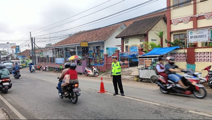 Majalengka // Zonakabar.com – Polsek Cikijing Polres Majalengka Polda Jabar terus berupaya memastikan kelancaran arus lalu lintas serta meningkatkan keamanan dan keselamatan pengguna jalan. Ps. Panit Lantas Aiptu Ade Deni H melaksanakan Protap Pelayanan Gatur Lalin di Jl. Raya Cikijing-Talaga, tepatnya di depan SDN Sukamukti II, Jum’at (31/10/2025).
