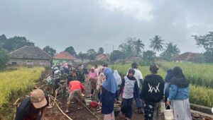 Majalengka // Zonakabar.com – Pemandangan menarik terlihat dalam pelaksanaan program TNI Manunggal Membangun Desa (TMMD) ke-127 Kodim 0617/Majalengka di Desa Sindangwangi, Kecamatan Sindangwangi, Kabupaten Majalengka, Jumat (6/3/2026). Tak hanya Satgas TMMD dan warga pria, sejumlah emak-emak pun turun langsung ke jalan membantu proses pengerasan jalan.