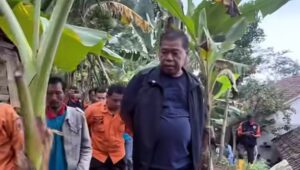 Bupati Majalengka, Eman Suherman, meninjau langsung lokasi bencana tanah bergerak di Blok Godabaya, Desa Sukadana, Kecamatan Malausma, Minggu (15/2/2026).