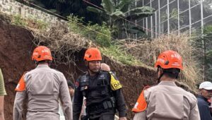 Tim SAR Satbrimob Polda Jabar segera bergerak ke lokasi setelah menerima laporan adanya longsor pada sebuah tebing. Peristiwa tersebut menimpa enam orang pekerja yang saat kejadian tengah melakukan pembangunan tembok penahanan tanah di area tersebut.